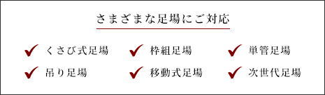 塗装用足場、土木足場、吊足場、大規模改修、解体工事用足場、